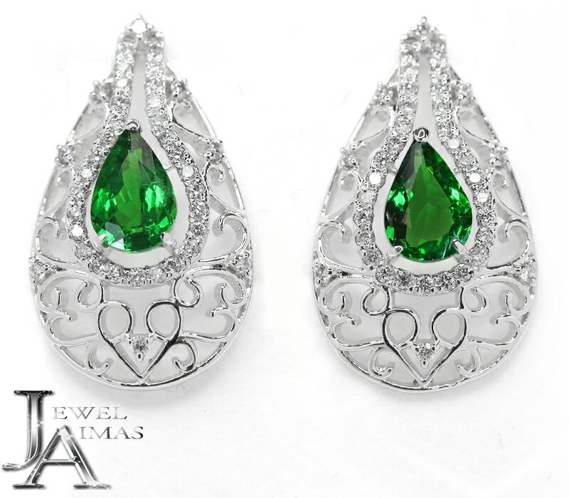 グリーンガーネット ツァボライト 1.33ct/1.17ct(計:2.5ct) ダイヤモンド 0.3ct/0.3ct(計:0.6ct) ペアシェイプ ティアドロップ ピアス PT900 プラチナ【新品】【ジュエリー】MEM