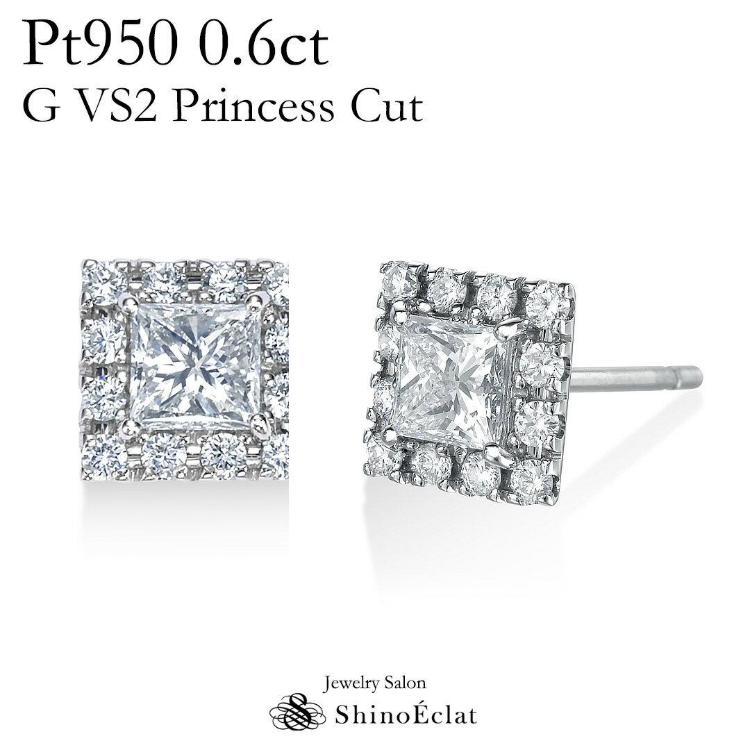 Pt950 Prinsecc Cut Diamond Pierce 0.6ct(0.3ct×2 ) ダイヤモンド ピアス プリンセスカット Gカラー VSクラス 合計0.6カラット diamond pierce プラチナ platinum 大人 上品 おしゃれ 豪華 人気 おすすめ 送料無料